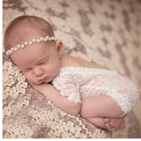 Newborn Photography Accessories Baby Girls Lace Romper Shoulder