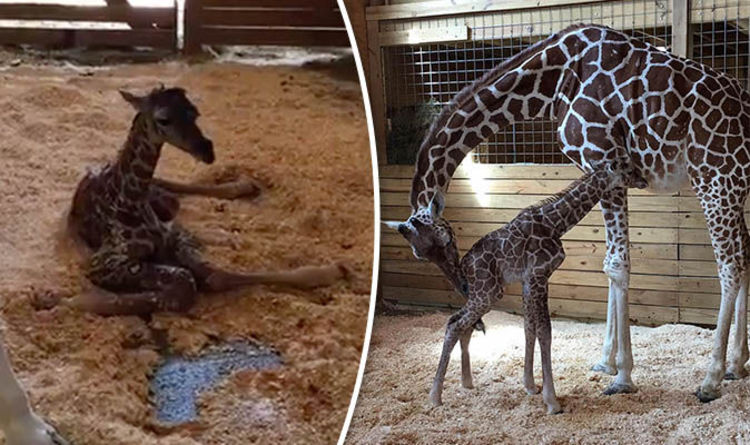 Baby Giraffe At Zoo Takes First Steps Minutes After Being Born