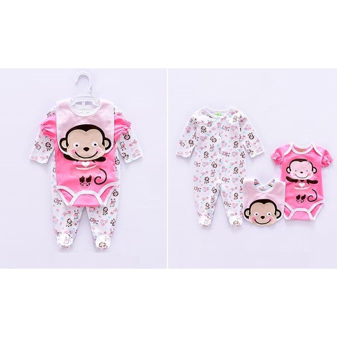 Produk Baby Set 3in1 Pink Monkey Girl Newborn Giftset Jumper