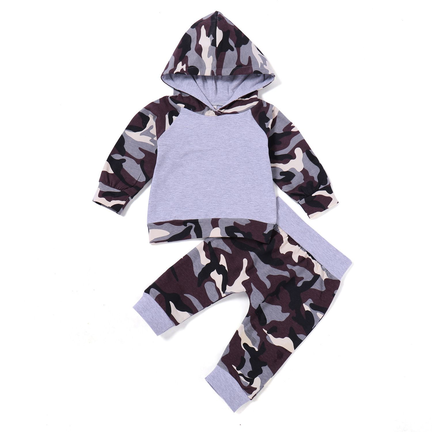 Baby Boys Camouflage Camo Hoodie Tops Long Pants 2pcs Outfits Set