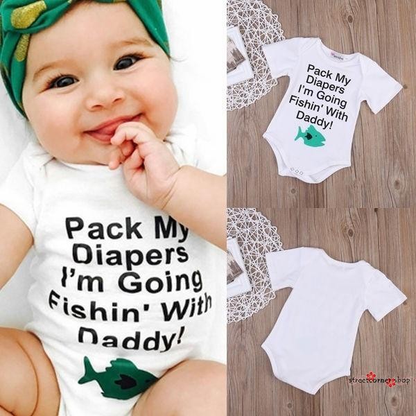Newborn Baby Clothes Funny Happy Birthday Daddy Letter White Short