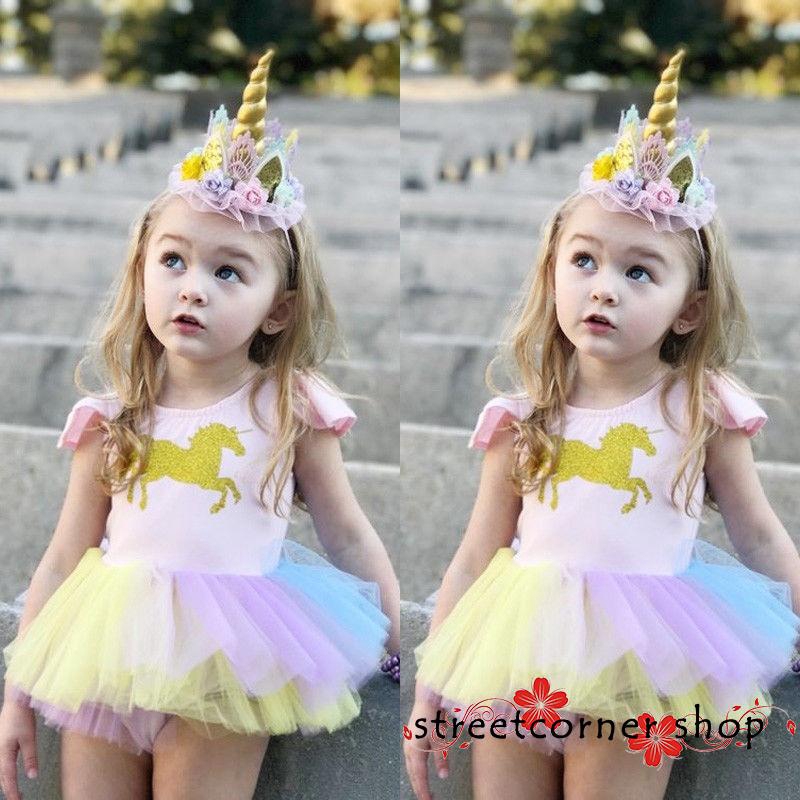 Ptt Fashion Newborn Baby Girls Unicorn Lace Tutu Romper Fancy