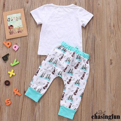 Vova Newborn Baby Boy Girls Short Sleeve Fox T Shirt Pants 2pcs Outfits Clothes Set