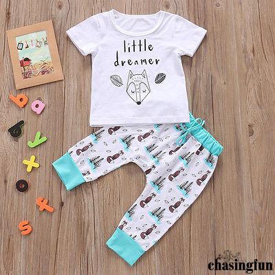 Newborn Baby Boy Girl Clothes Set Little Dreamer Fox T Shirt Tops Pants Outfits Clothes Mother And Kids Store
