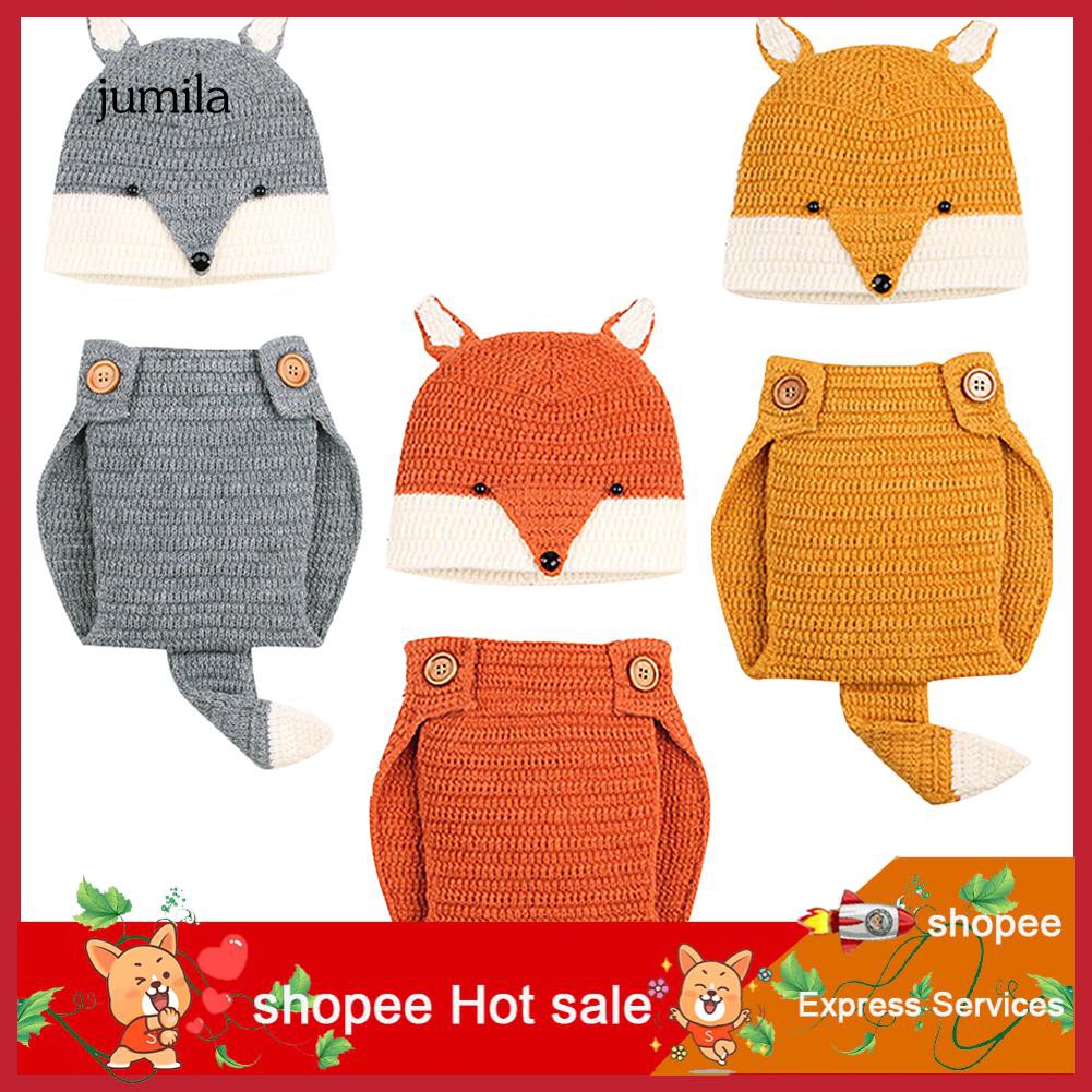 Super Cute Fox Handmade Crochet Knitted Newborn Boy Girl Photo Props Outfit Costume Set Shopee Indonesia