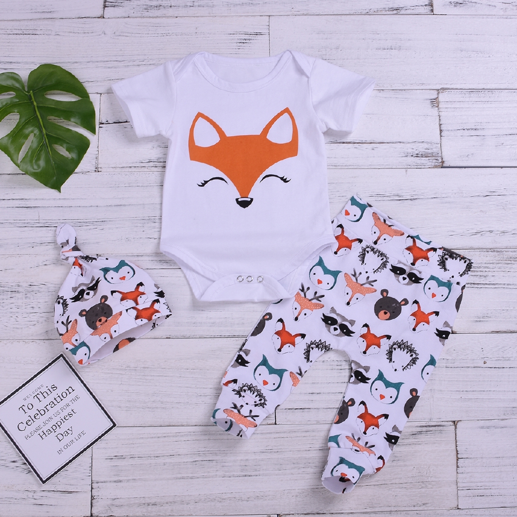 Xzq Newborn Kid Baby Girl Boy Infant Set Fox 3pcs Clothes Romper Top Pants Outfit Shopee Indonesia