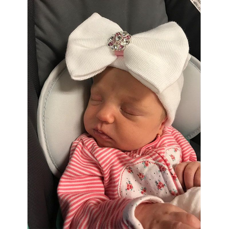 Ilybean So Sweet Pink Bow Newborn Girl S White Hospital Nursery Hat Madison Drake Children S Boutique