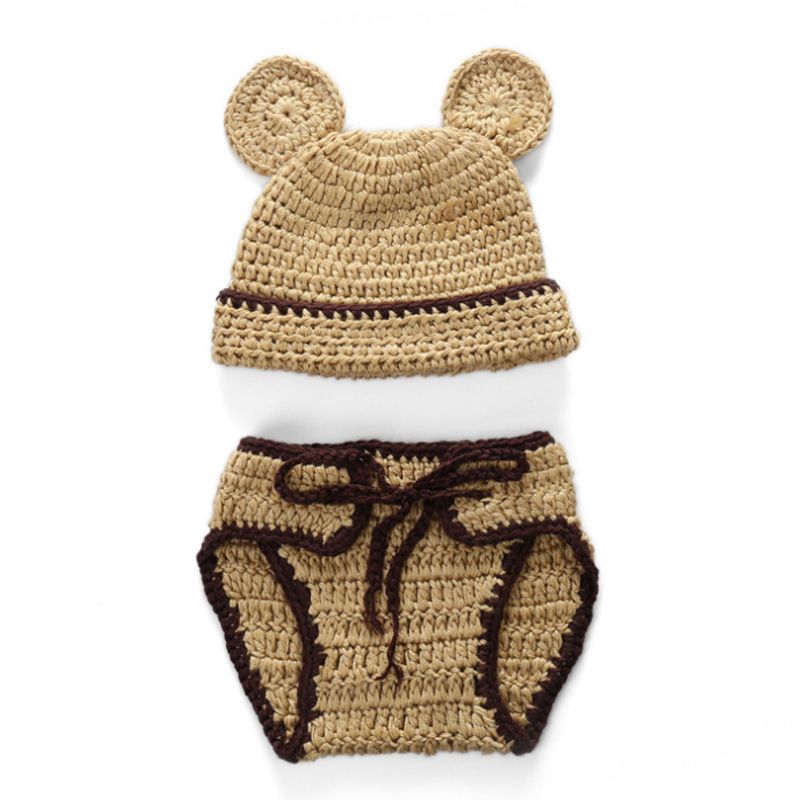 Knitted Newborn Girl Boy Bear Bonnet Baby Pants P Prop Baby Romper