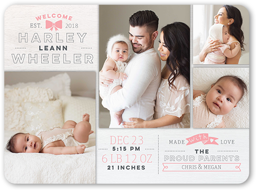 Modern Icon Girl 6x8 Birth Announcement Card Shutterfly