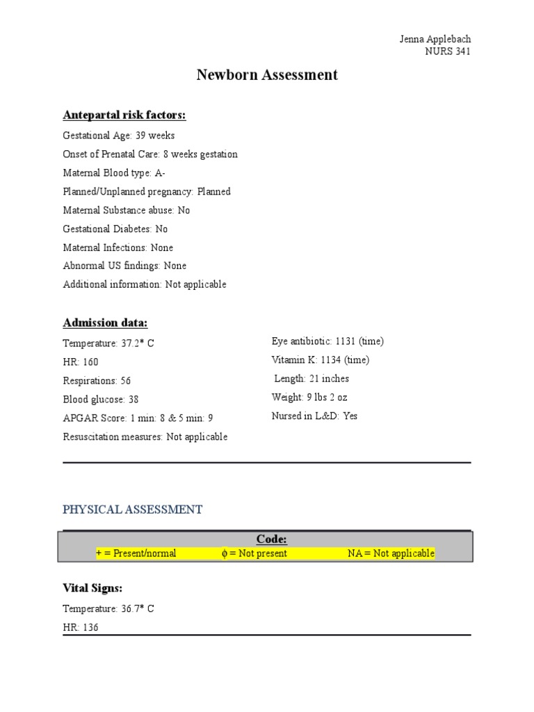 Newborn Physical Assessment With Norms Tamucc Studocu