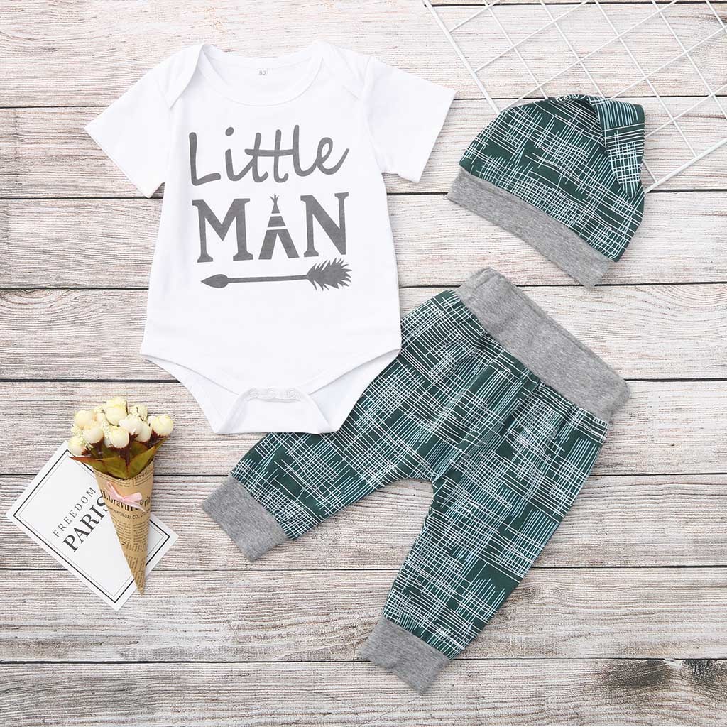 3pcs Newborn Baby Boys Clothes Sets Letter Short Sleeve Romper