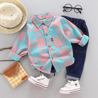 Spring Infant Baby Boy Clothing Sets Plaid Shirt Jeans Suit For