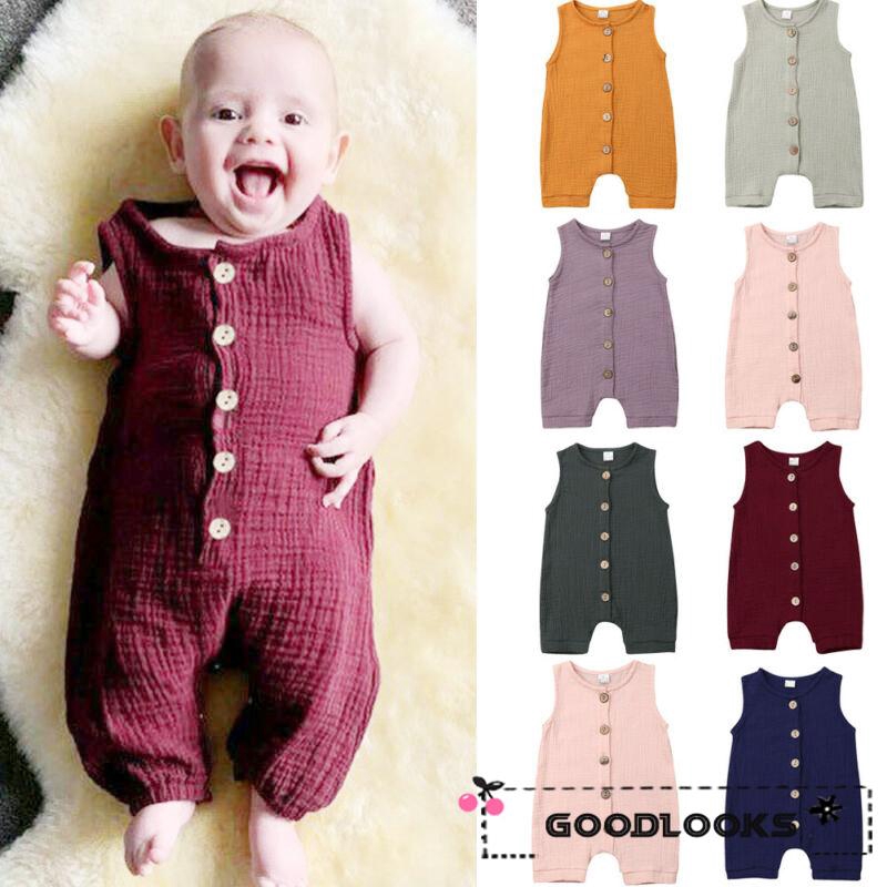 Kids Tales Newborn Baby Boy Girl Cotton Linen Romper Solid