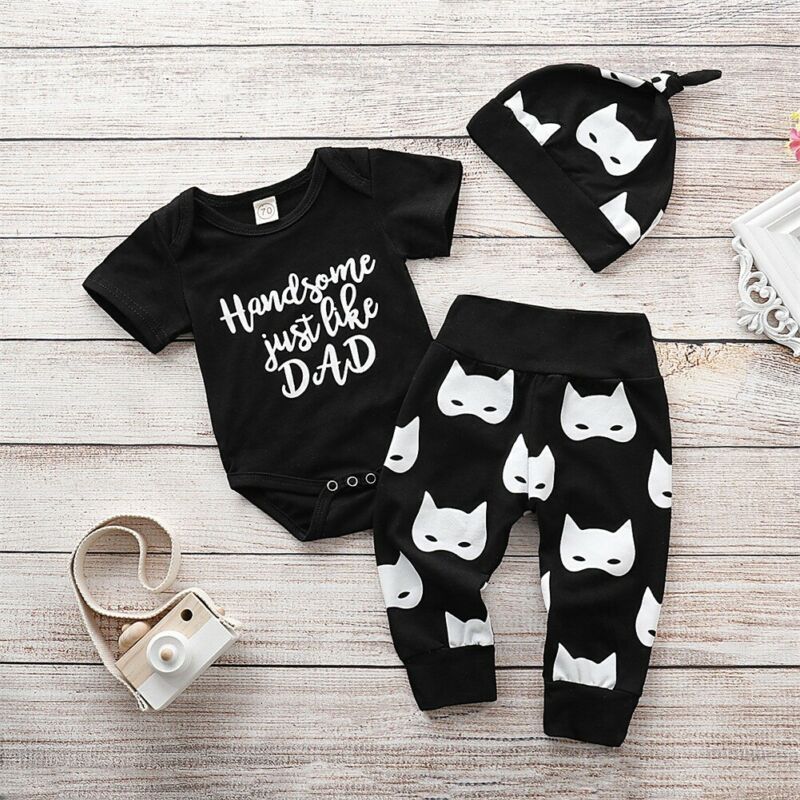 2020 Newborn Infant Baby Boy Outfits Set Clothes Handsome Just Like Dad Short Sleeve Bodysuit Long Pants Leggings