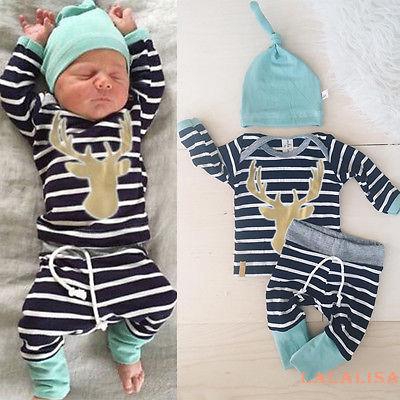3 Pcs Newborn Kids Baby Boy Deer Outfit Set Infant Babies Long
