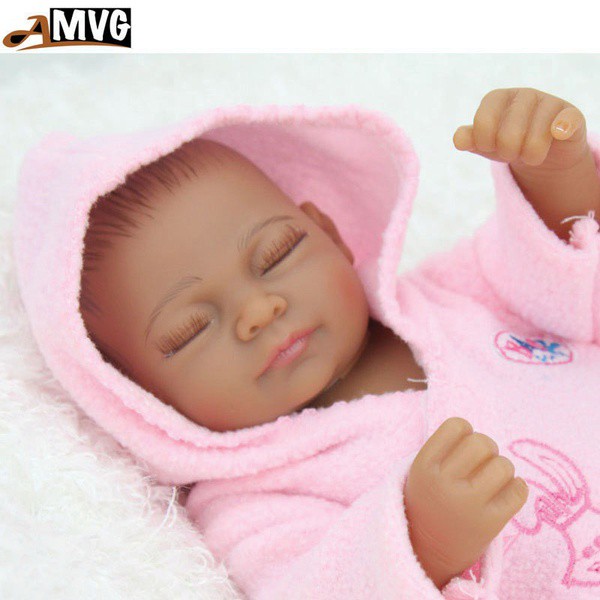 28cm Eye Closed Baby Girl Doll Black Skin Realistic Reborn Baby