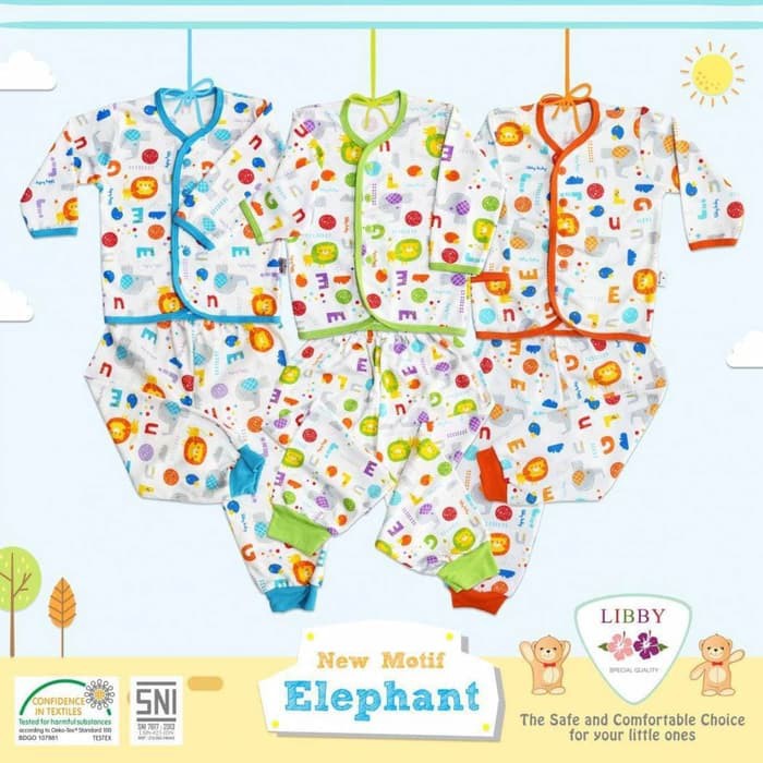 Jual Libby Baby Elephant Lengan Panjang Kancing Depan 3pcs