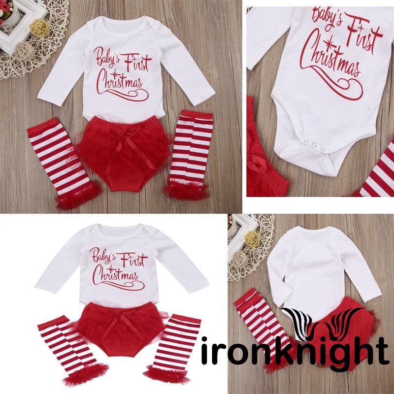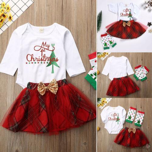 My 1st Christmas Newborn Baby Girl Xmas Romper Dress Leg Warmers
