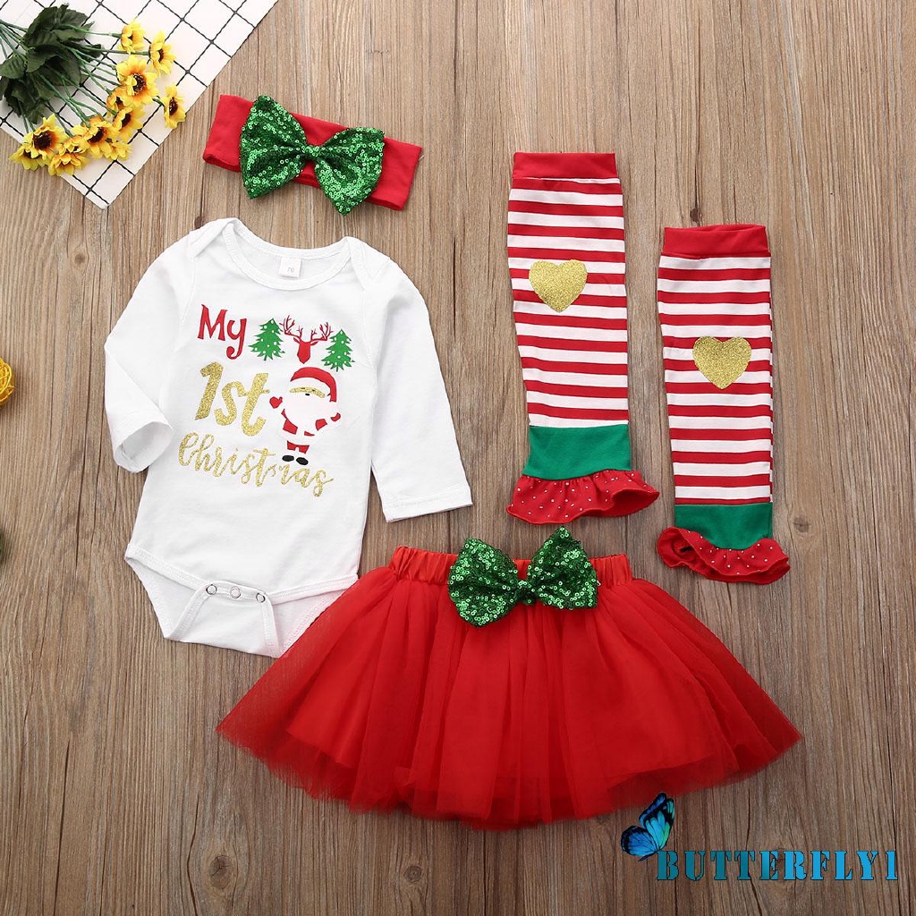 4pcs Newborn Infant Baby Girls Christmas Romper Tutu Dress Outfits