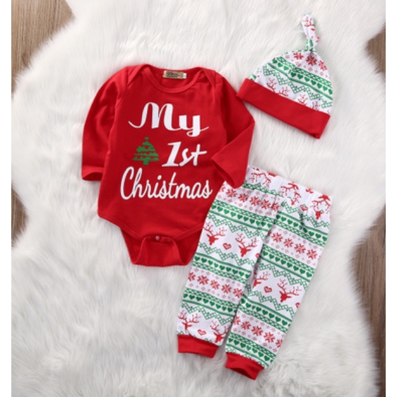 3pcs Newborn Baby Girls My First Christmas Clothes Romper Shopee