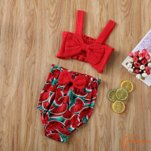 Bღbღ2pcs Newborn Baby Girl Clothes Bow Sling Red Tops Watermelon