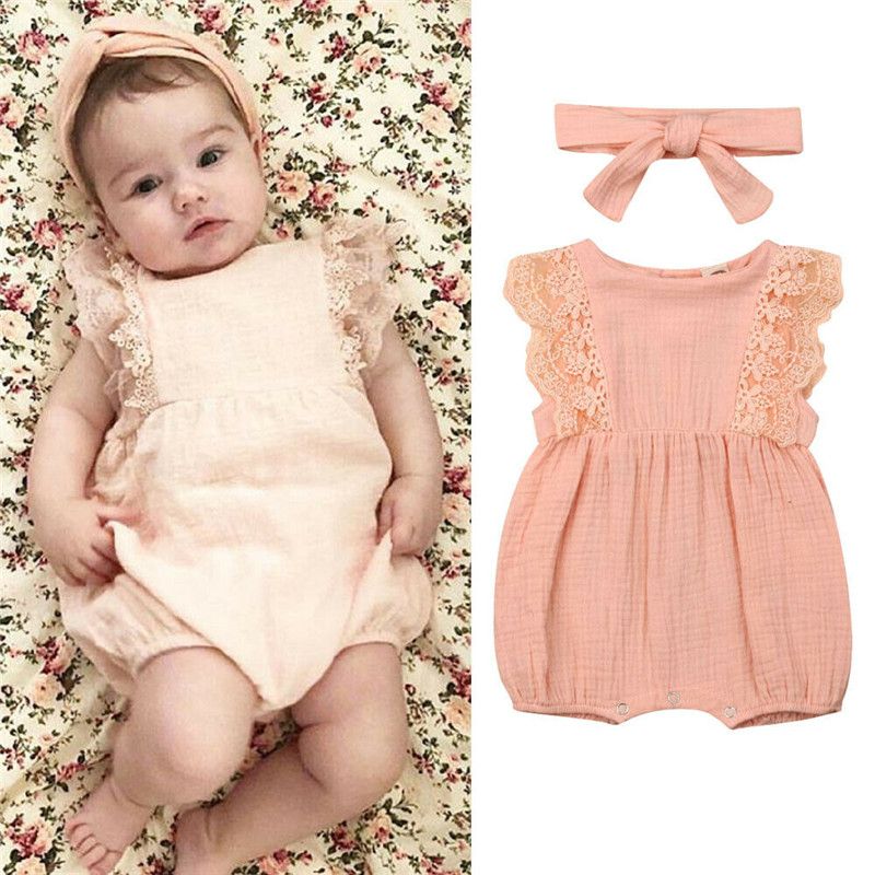Newborn Baby Girls Romper Jumpsuit Bodysuit Infant Headband