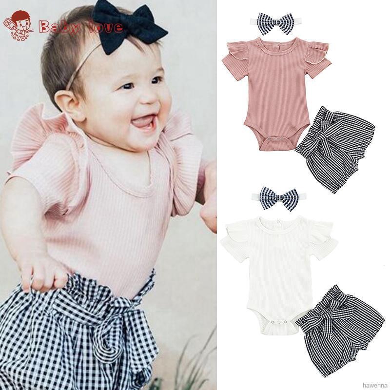 S Infant Newborn Baby Girl Clothes Solid Color Romper Stripe