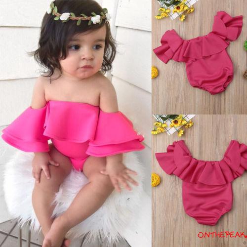 New Newborn Baby Girl Ruffle Off Shoulder Romper Bodysuit