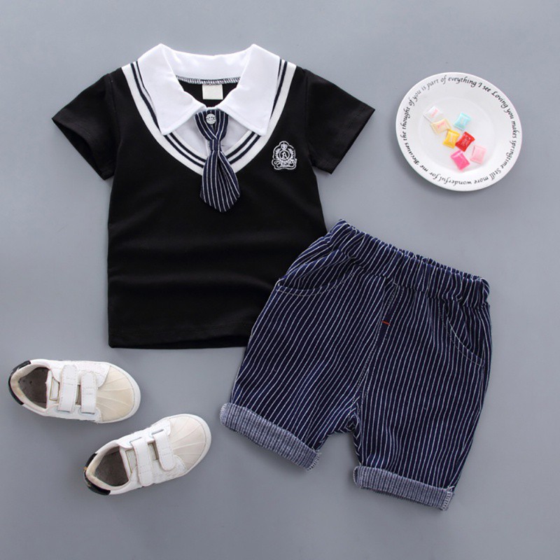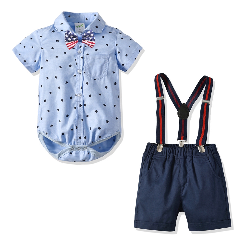 Mamalove Summer Newborn Boy Clothing Set Cotton Baby Shirt Strap Shorts Bow Tie Infant Kids Outwear Shopee Indonesia