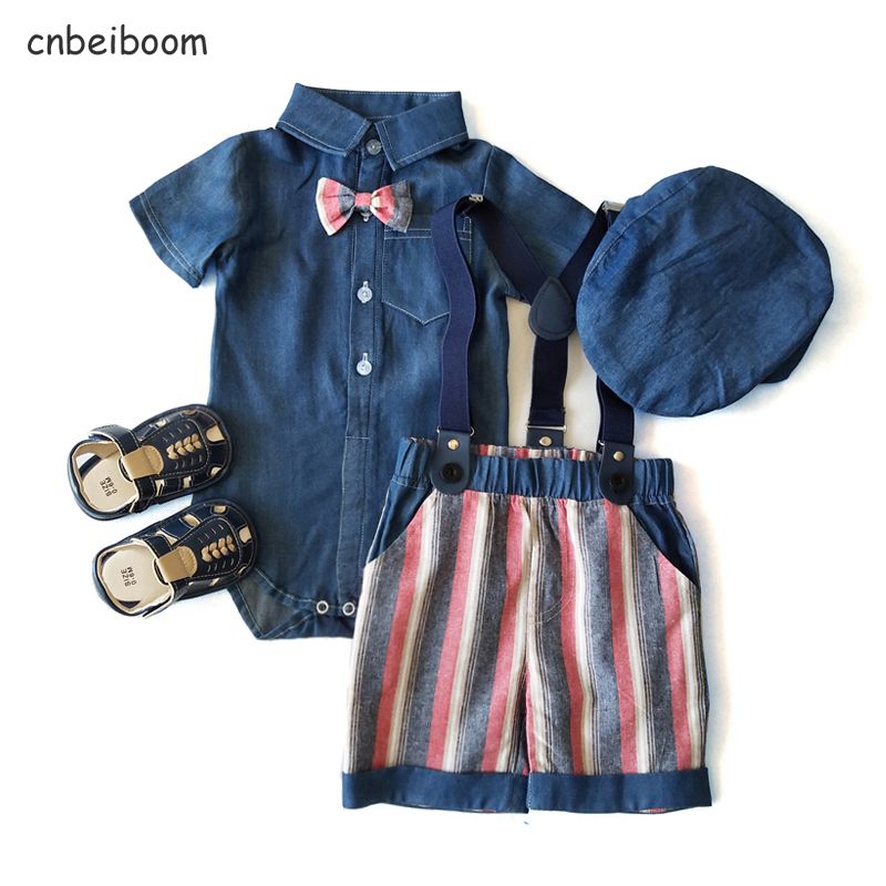 2020 2020 Baby Clothes Newborn Boys Clothing Set With Hat Denim Romper Stripes Belted Shorts Shoes Boy Outfits Summer Suit From Xunqian 32 85 Dhgate Com