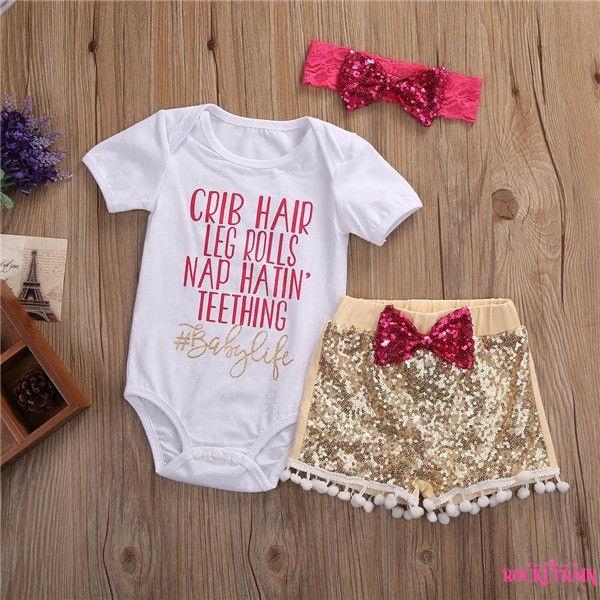 3pcs Cute Newborn Baby Girl Outfits Clothes Tops