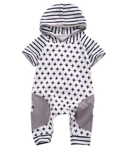 Newborn Baby Girls Boy Clothing Hooded Romper Cross Short Sleeve