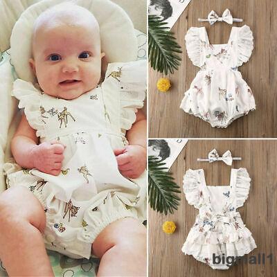 Summer Born Infant Baby Girl Floral Clothes Sleeveless Romper Deer