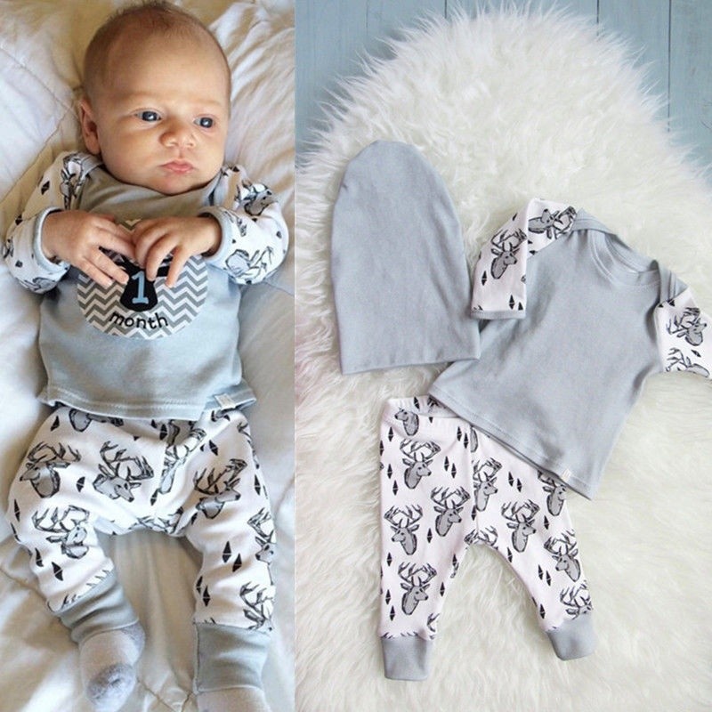 3pcs Set Newborn Baby Boy Girl Long Sleeve Deer Clothes Tops