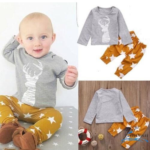 Cute 2pcs Newborn Baby Girl Boy Clothes Set Deer Long Sleeve