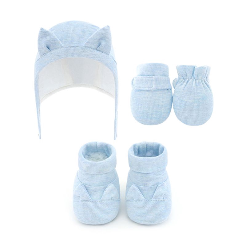De New Cotton Baby Hat Gloves Feet Cover Set Newborn Anti Grab