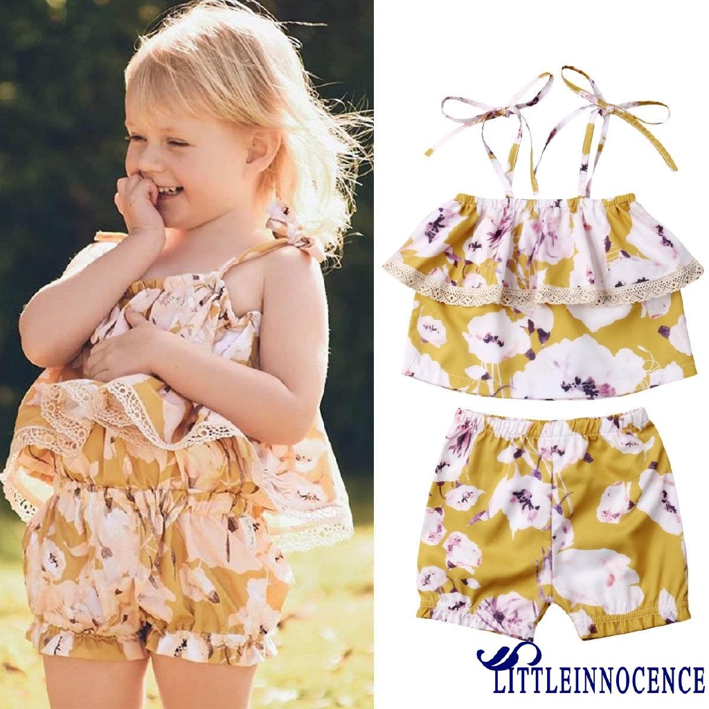 0i0 2pcs Newborn Baby Girl Floral Ruffle Top Blouse Shirt Shorts