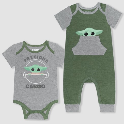 Baby Boys Star Wars 2pk Baby Yoda Romper Gray Newborn Target