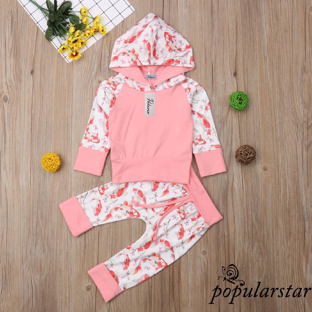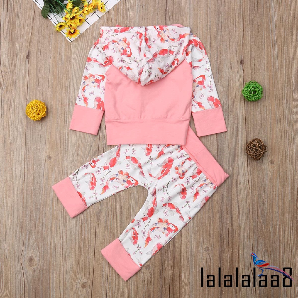 Mla 2pcs Newborn Kids Baby Girl Koi Fish Hooded Tops Pants Autumn