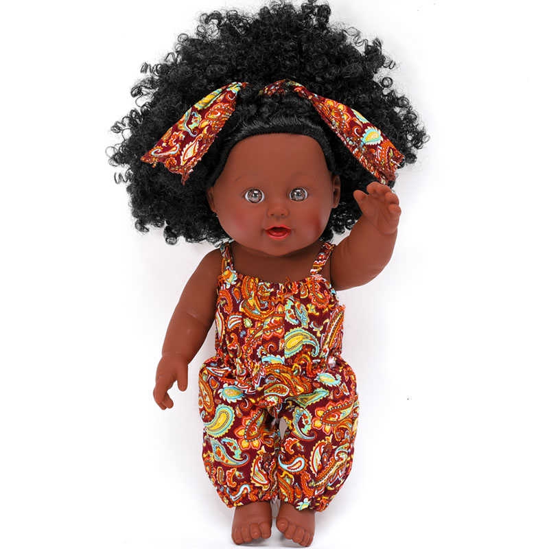 28cm Baby Doll With Clothes Vinyl Silicone Handmade Black Newborn Reborn Baby Doll Wish