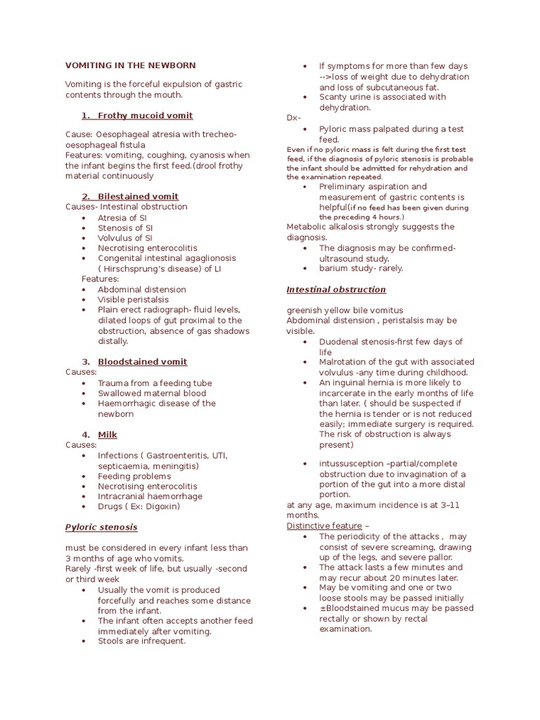 Vomiting In The Newborn Infant Docx Rtt Gastroenterology