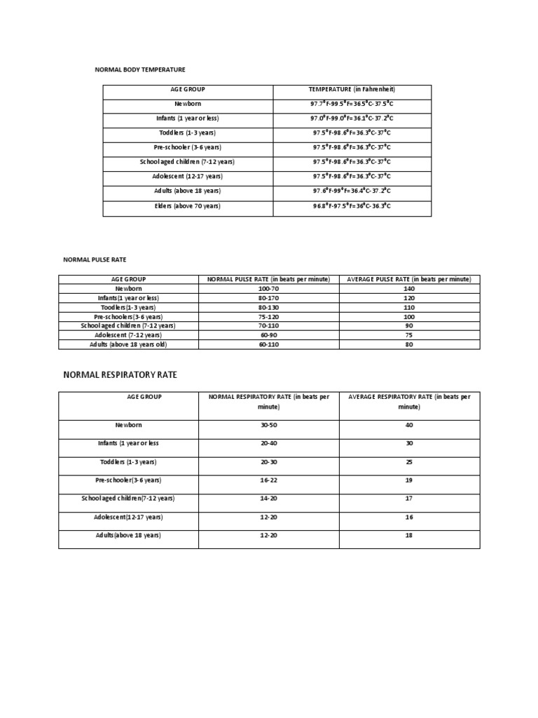 Normal Vital Signs And Flow Rate Childhood Medicine Uji Coba Gratis 30 Hari Scribd