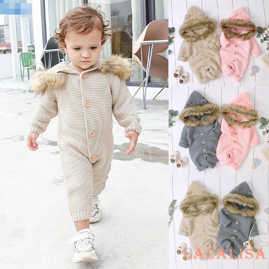 Winter Newborn Baby Girl Boy Knitted Clothes Hoodie Romper