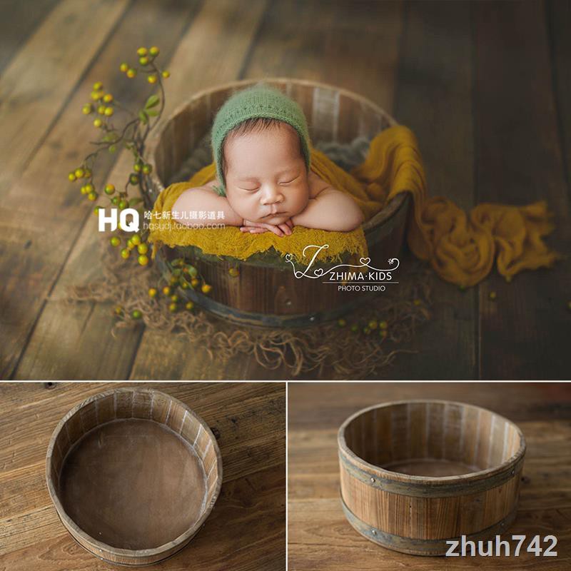 Newborn Photography Props Natural Wood Bucket Baby Full Moon